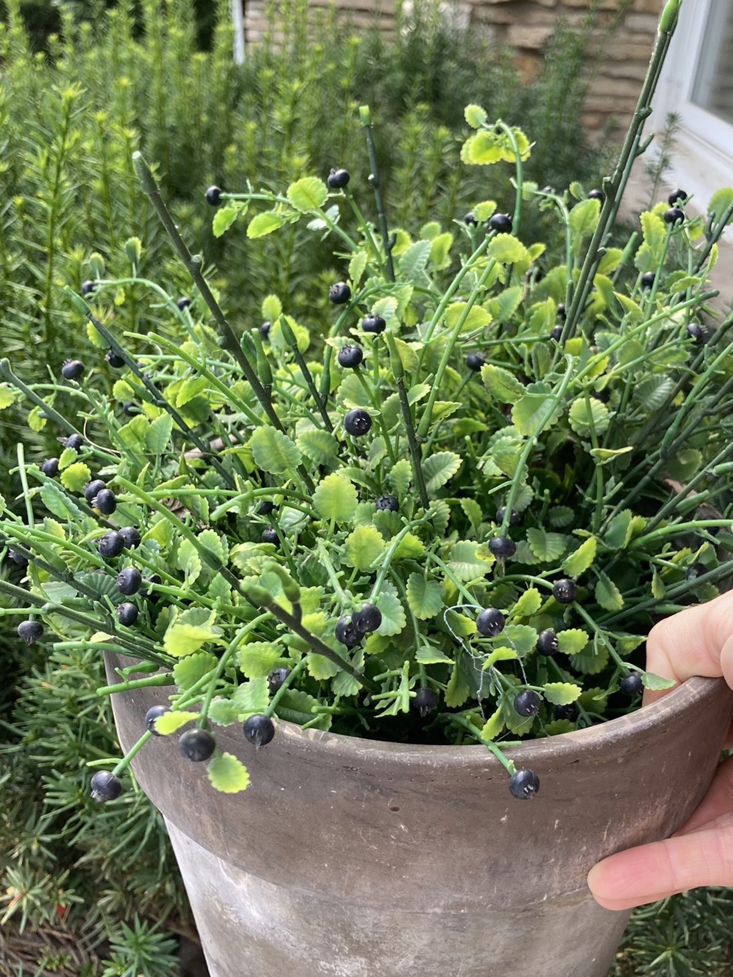 Clay planter and decorative plant