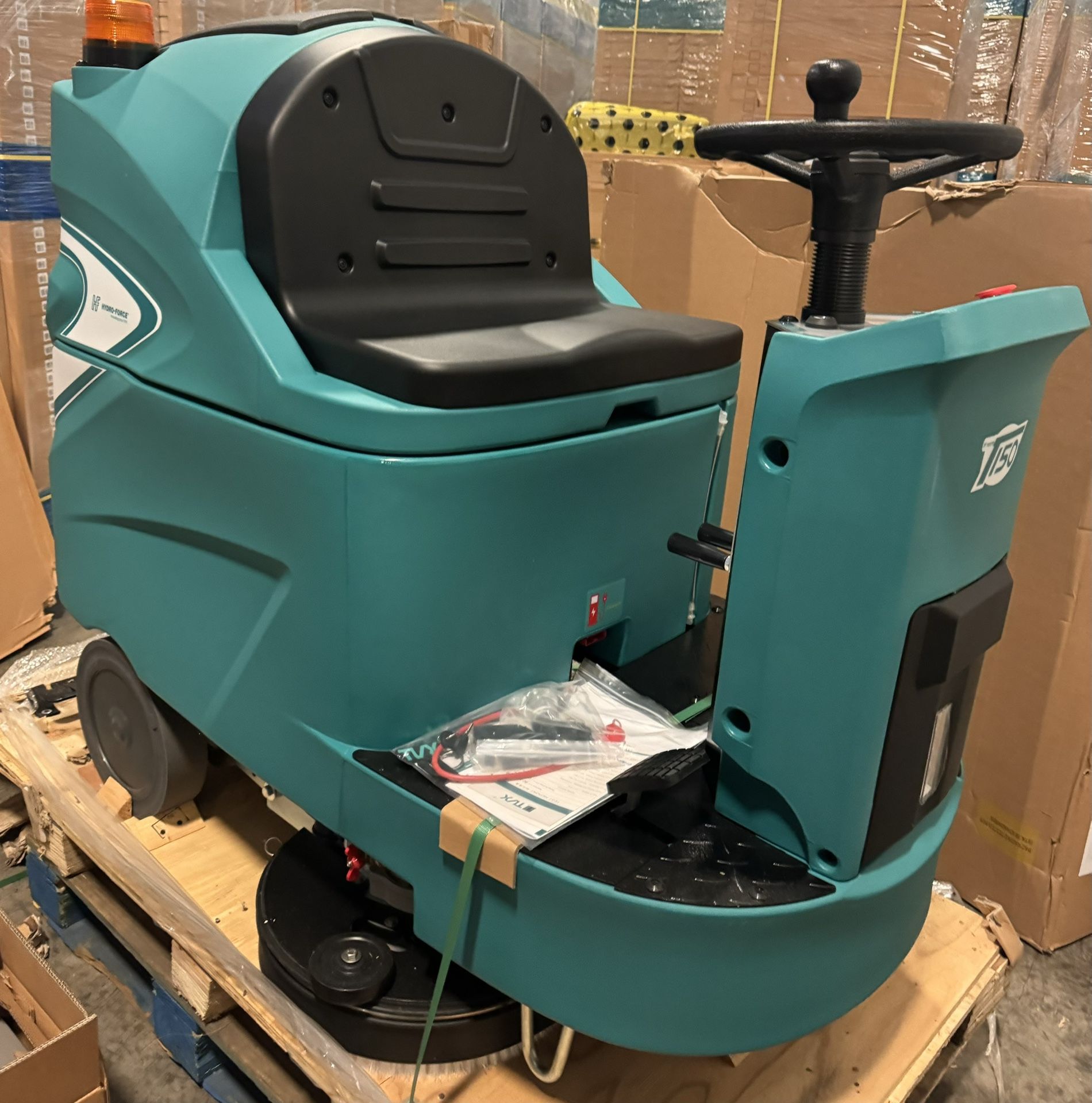 Hydroforce T150 - Retail price $14,250 + Tax The T150 ride-on scrubber dryer series, with a 36V industrial control system with high stability and durability, is ideal for extensive area floor cleaning. Ergonomic design and simple control ensure efficiency and safety.