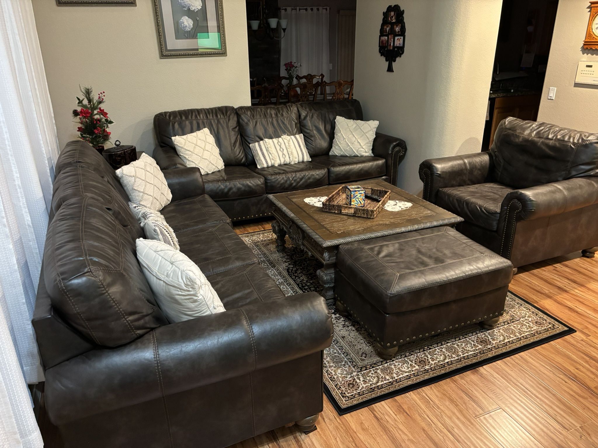 Price includes 2 sofas , one lounge chair , coffee table, decorative pillows , ottoman and wall painting as seen in picture . Asking $1,200