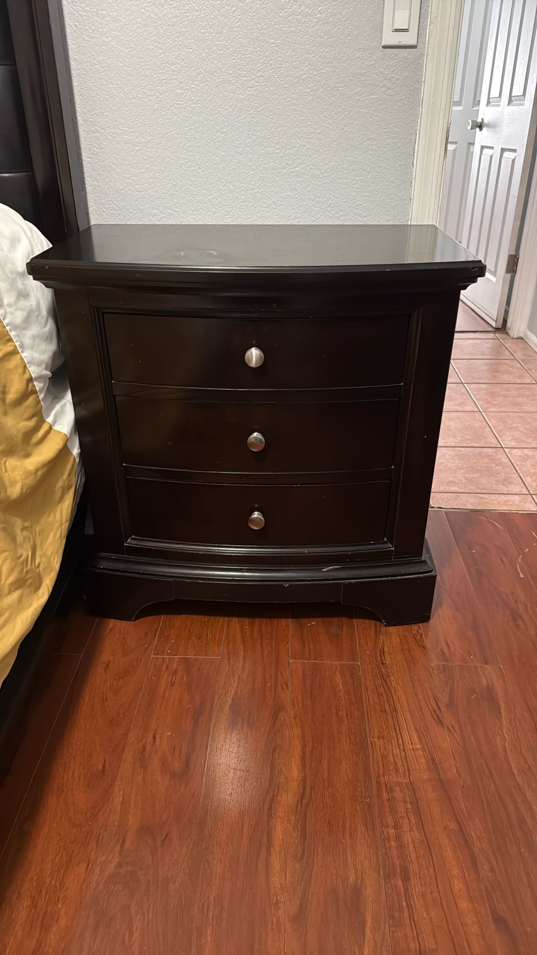 Includes bed frame, 2 dressers with mirror and two night stands.