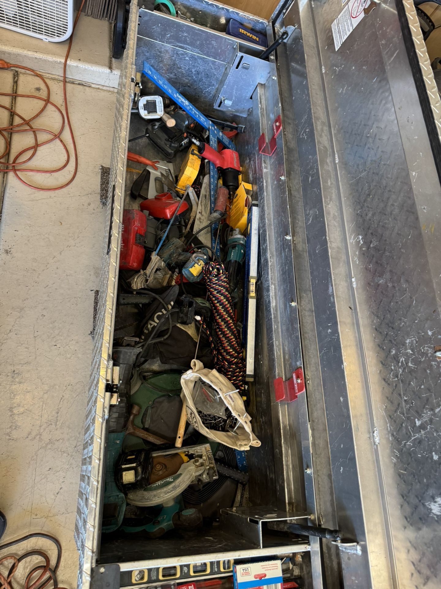 The tool box has a lock on one side the other is missing. It is full of tools they are all untested. Please see pictures for what’s included. Most of the drills do not have the batteries please see pictures
