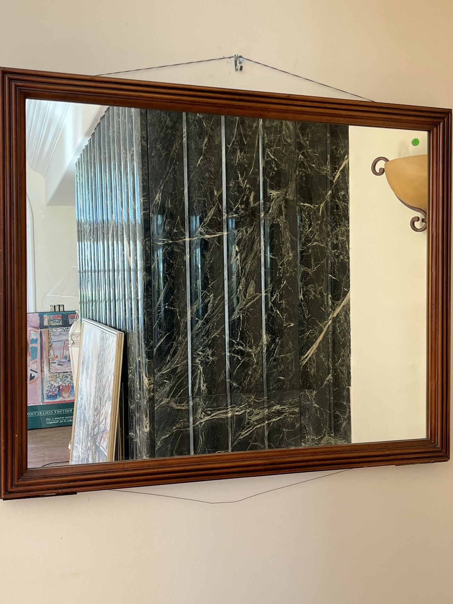 Large mirror with wooden frame. In good condition. Ready for a new home. Located in Beverly Hills. Must pick up. Asking $75 OBO