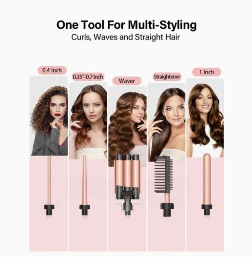 NEW, UNOPENED BOX. Box in PERFECT Condition! Handy Curling Wand with 4 different barrels & Hair Straightening Comb...! INCLUDES : 1. Triple wave barrel/ beach waiver 2. 10mm barrel 3. 9-18 mm cone barrel 4. 25mm barrel 5. Straightening Hair Comb This MODEL with Hair Straightening Comb is NO LONGER AVAILABLE ON AMAZON. Pink & Black Color Brand: Bestope Pro Great accessory to INVEST IN with 5 tools in 1...! And SAVE SPACE & Money...! ONLY USE ON DRY HAIR. UNIQUE TOOL with Heated Hair Straightening Comb! #curlingiron #curler #haircurlers #haircurling #haircrimper #haircurl #beachwaves #crimper #haircurler #haircrimper #stylingtools #stylingwand #curlingwand #beachwavecrimper #straighteningcomb #hotcomb #electrichotcomb #hairstraightening #hairstraighteningcomb #hairstraightenercomb #hairstraightener #mermaidcurler #mermaidcurlingiron #hothaircomb #electrichairstraighteningcomb #electrichairstraightener #electrichairstraightenercomb