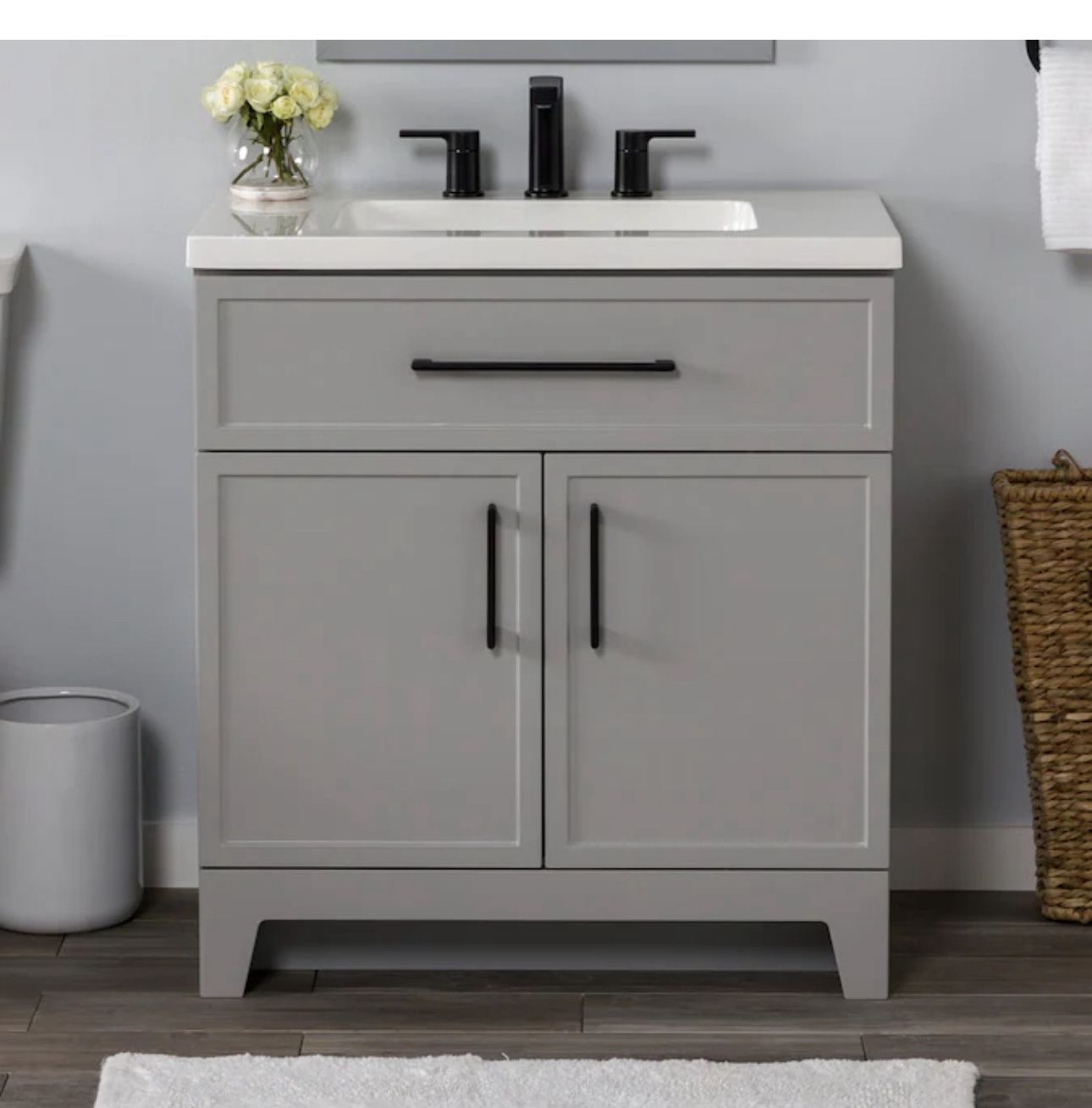Style Selections Potter 30-in Light Gray Single Sink Bathroom Vanity with White Cultured Marble Top