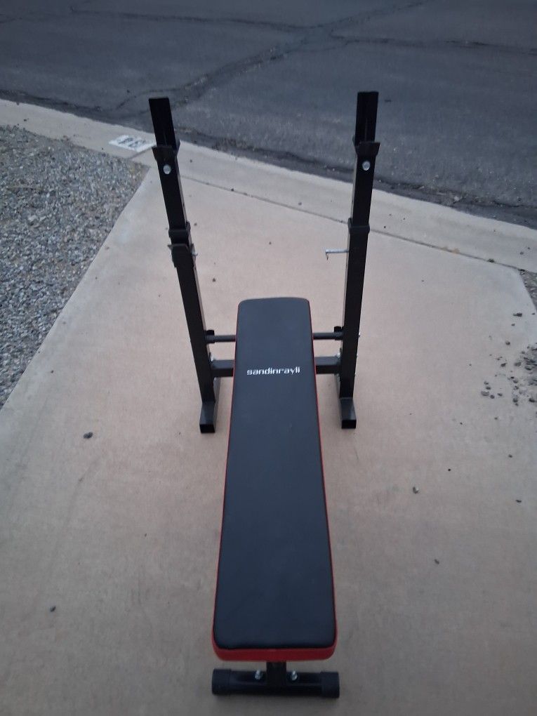 Folding bench press with dip handles Hardly ever used Also have Olympic bar and rubber coated weights all for $200
