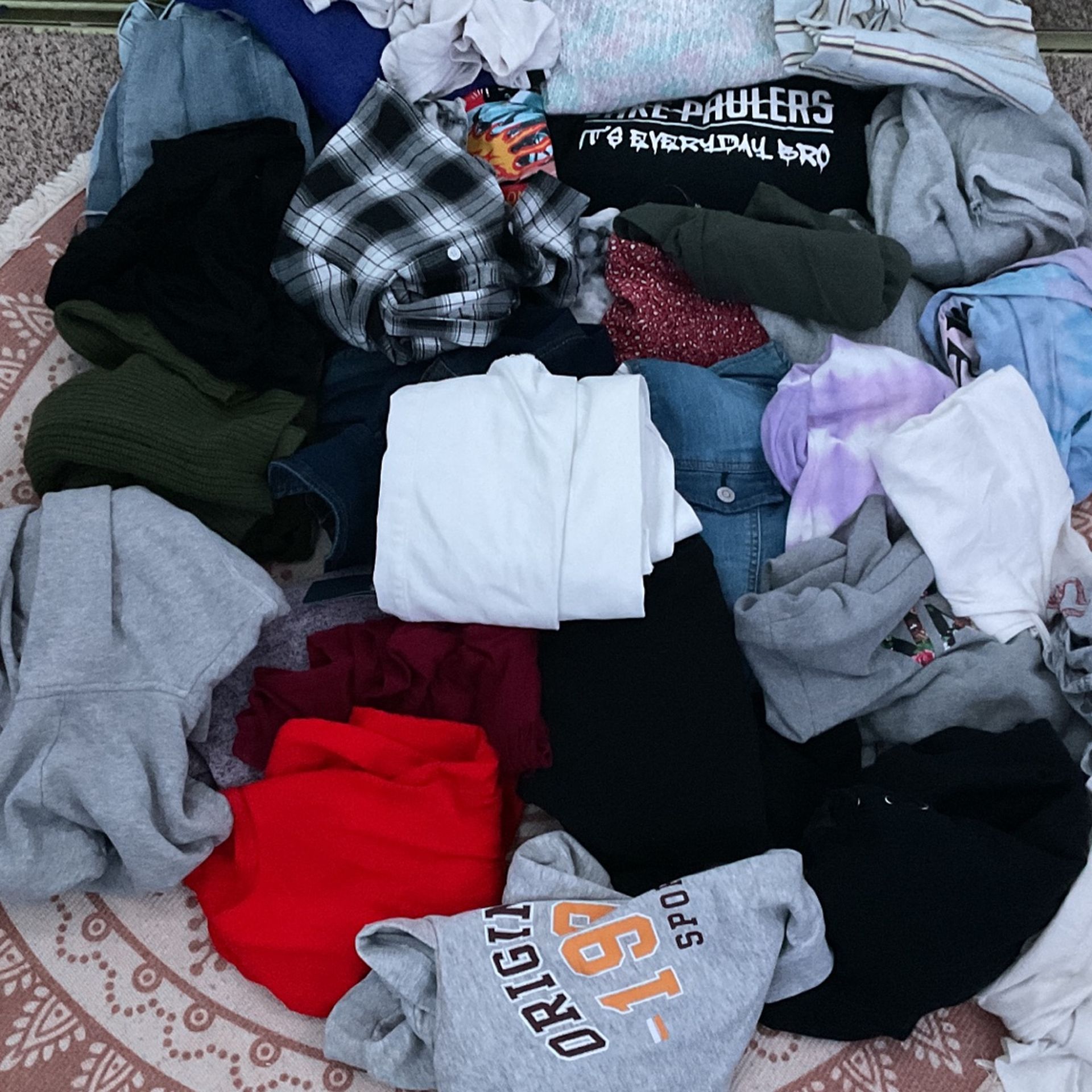 There are two trash bags filled with clothes, there is mainly jackets and hoodies but there’s also about 10 to 12 shirts, there’s two pairs of jeans and a pair of shorts. I WILL NEGOTIATE PRICES!