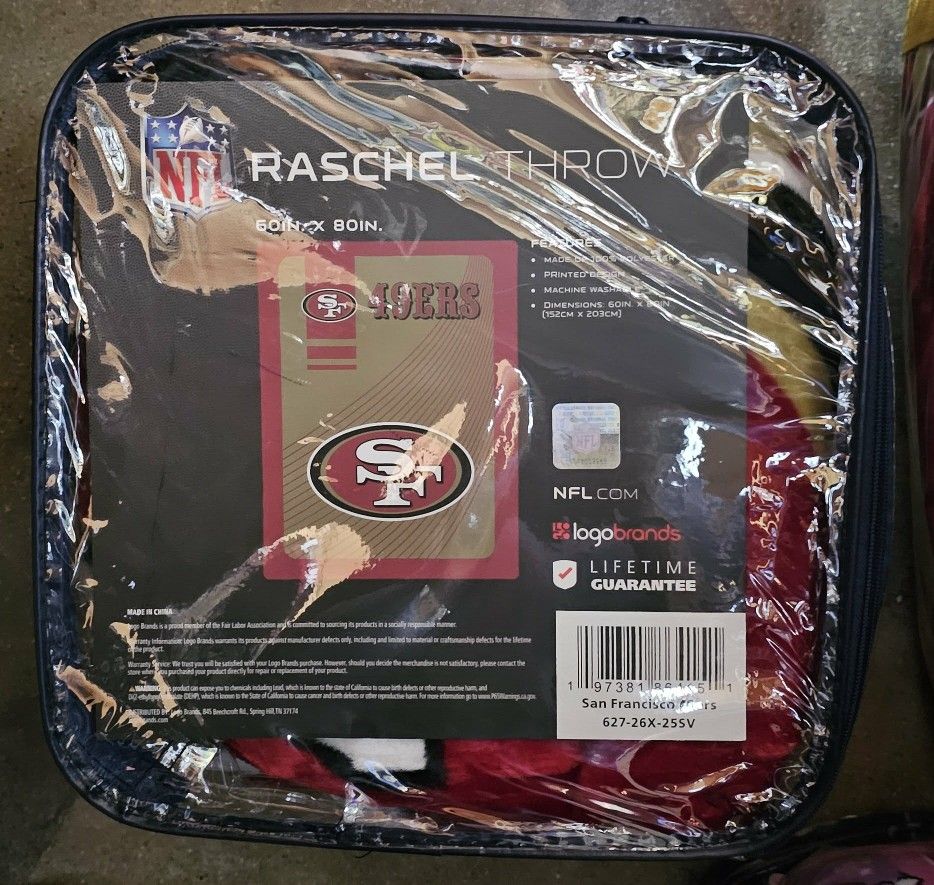 New NFL San Francisco 49ers Raschel throw Logo brands Red & yellow 60in x 80in/ 152cm x 203cm 100% polyester Machine Wash Made in China