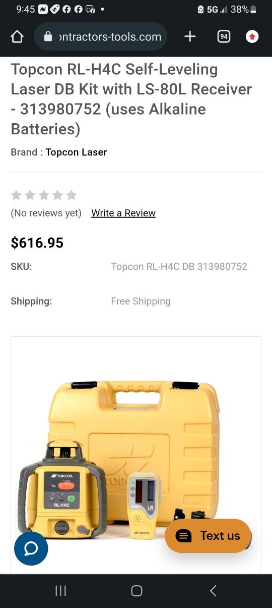 Used topcoat laser level retail new is 650 but I'm trying to sell for half at 300
