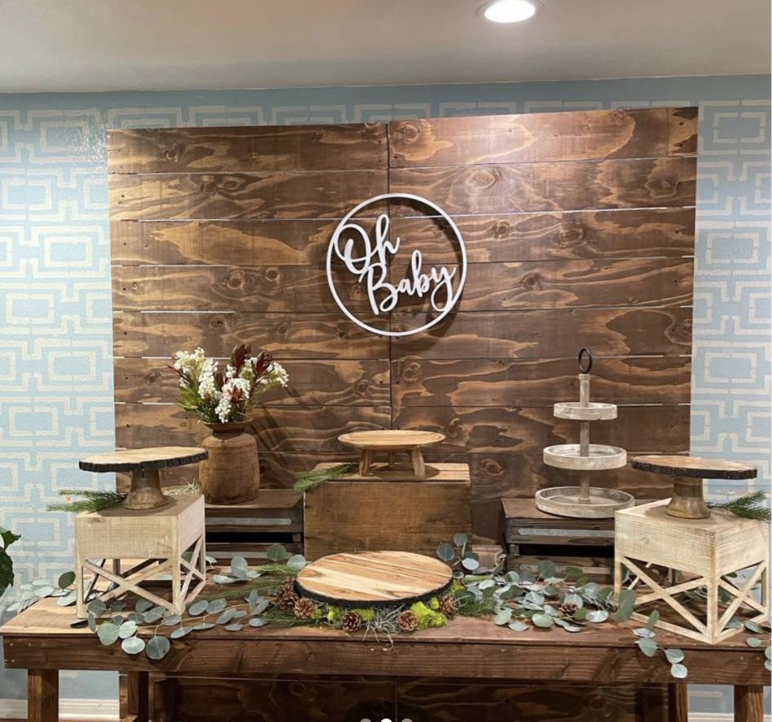 Wooden backdrop and 8ft wooden farm table for rent FREE LOCAL DELIVERY