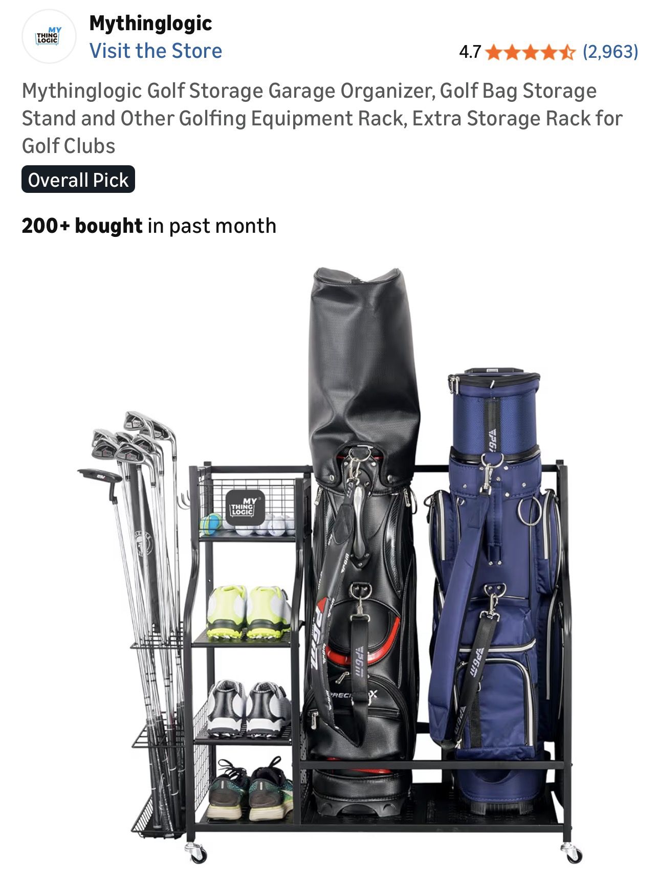 Mythinglogic Golf Storage Garage Organizer $90 on Amazon