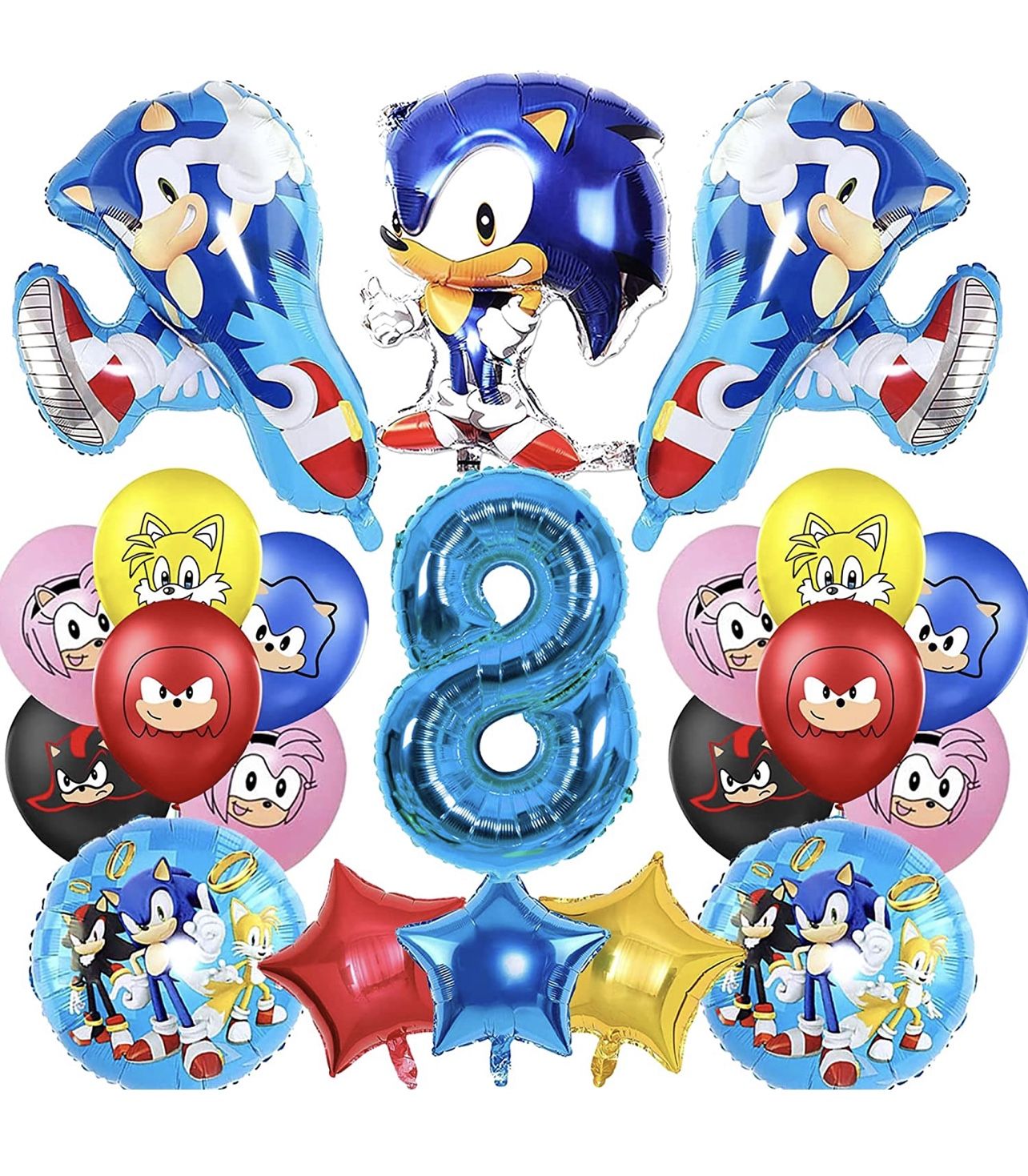Cartoon Balloons kits:21pcs Hedgehog Party Balloons include 3pcs Character Balloons,2pc 17.7inch round shape balloon,12pcs 12inch Latex balloon,3pcs 17.7inch Star balloons and 1pc 28inch Blue number 8 balloon Cartoon Balloons kits:21pcs Hedgehog Party Balloons include 3pcs Character Balloons,2pc 17.7inch round shape balloon,12pcs 12inch Latex balloon,3pcs 17.7inch Star balloons and 1pc 28inch Blue number 8 balloon Quality Material:Cartoon Foil Balloons are Made Of Durable Foil, Safe, Non-Toxic And Reusable. The Smooth Touch Of Balloon Surface Gives You a Good Experience Quality Material:Cartoon Foil Balloons are Made Of Durable Foil, Safe, Non-Toxic And Reusable. The Smooth Touch Of Balloon Surface Gives You a Good Experience