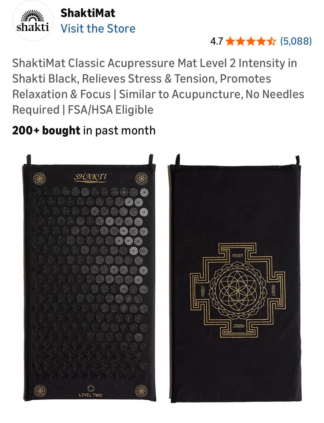 ShaktiMat Classic Acupressure Mat Level 2 Intensity in Shakti Black, Relieves Stress & Tension, Promotes Relaxation & Focus | Similar to Acupuncture,