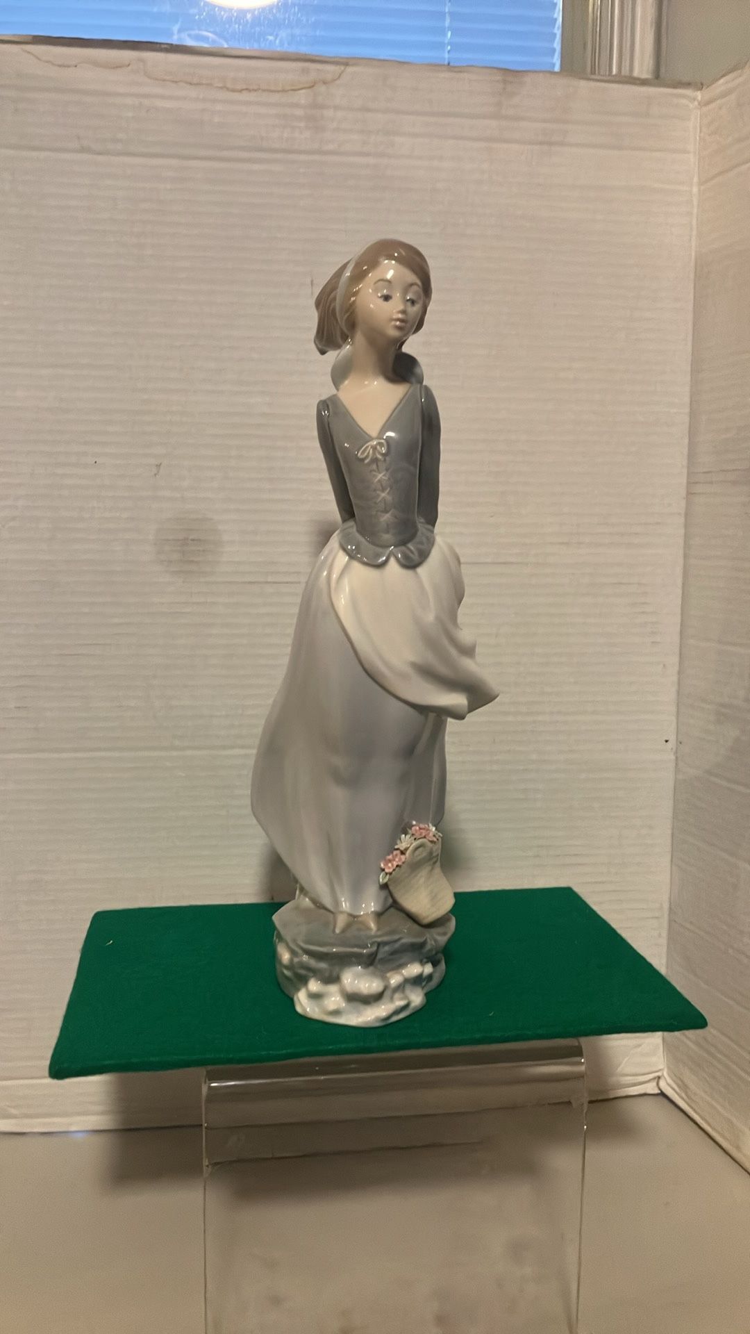 The figurine is identified as Sea Breeze Wind Blown Girl, #4922g. It measures 14 inches high. The piece is done with excellent attention to detail throughout, it has a gloss finish. This piece was issued in 1974 and retired in 2002. It was designed by Salvador Debon. There is no box. The figurine is in excellent condition with no chips or cracks. Pick up at Either 10803 Bandera Rd or 10683 Huebner Rd. Pick up at EITHER 10803 Bandera Rd or 10683 Huebner Rd.