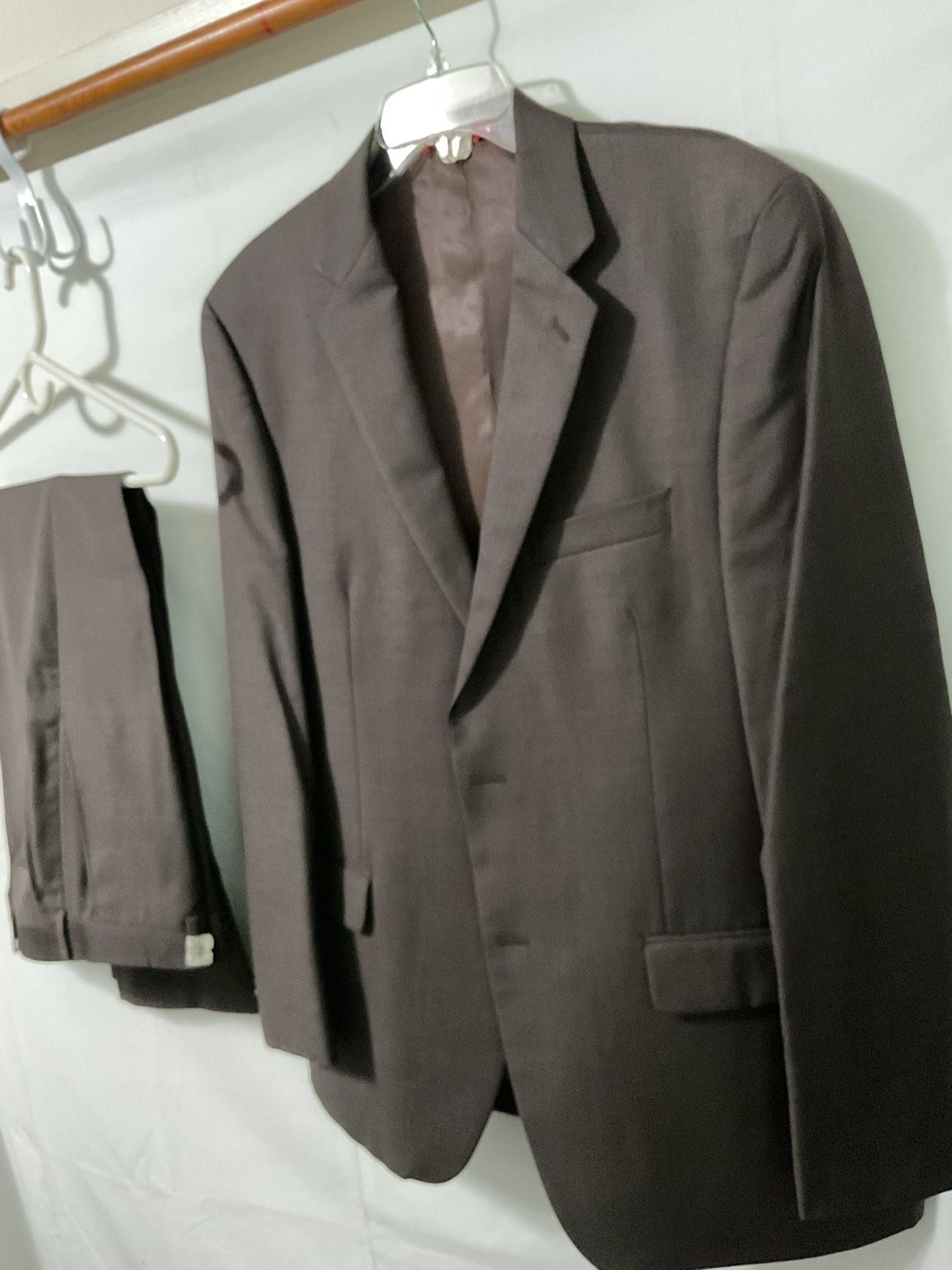 The pants is 33 x 30. The coat is 42R. Color is dark brown. In great condition.