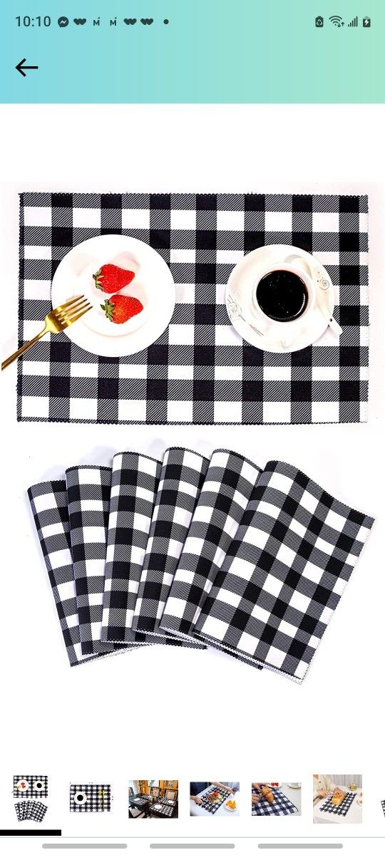 Buffalo Plaid Kitchen Placemats Set of 6 - White Black Checkered Fall Farmhouse Kitchen Dining Patio Table Place Mat(Black / White Plaid)