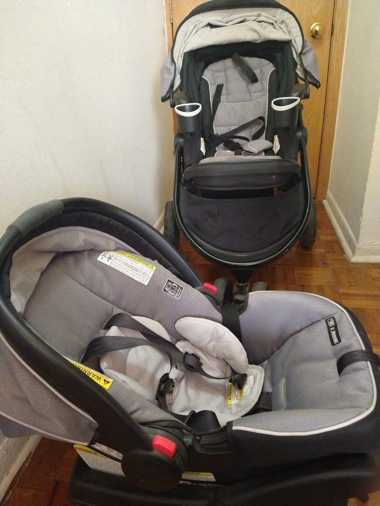 Car seat- gently used. Only for doctor visits and occasional cab rides. Asking price : $30 Stroller - Normal wear :$20 Model: Graco Modes 3 lite. Year bought: early 2017.