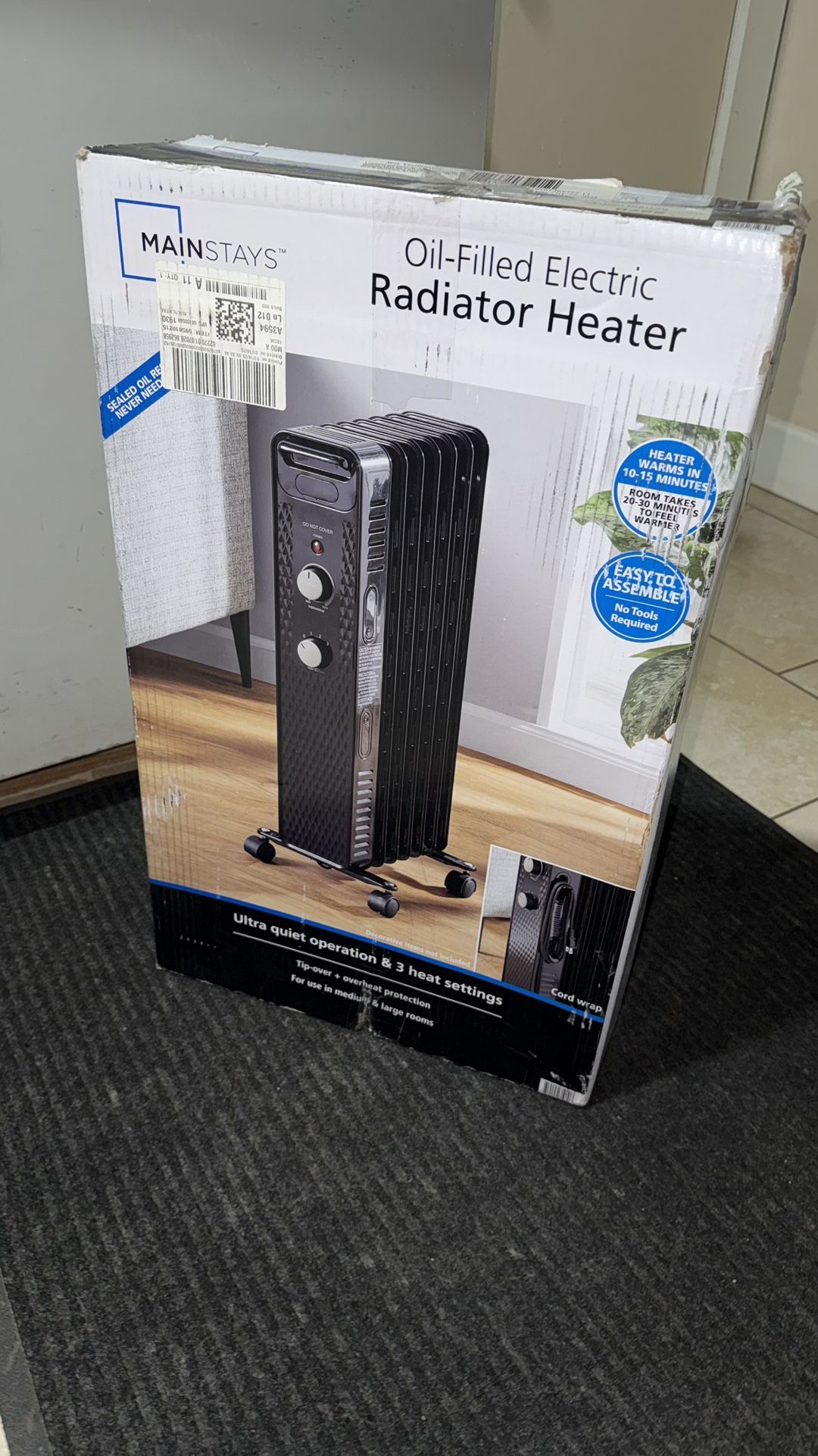 Mainstays Calentador de Espacio con Radiador Eléctrico Relleno de Aceite Mecánico Negro, Nuevo, WSH07O2ABB