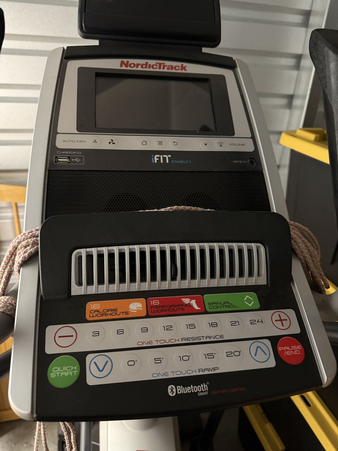 Heart rate monitor, Programmable workouts, Incline adjustment, Bottle holder, Speedometer, Calorie monitor, LCD-display