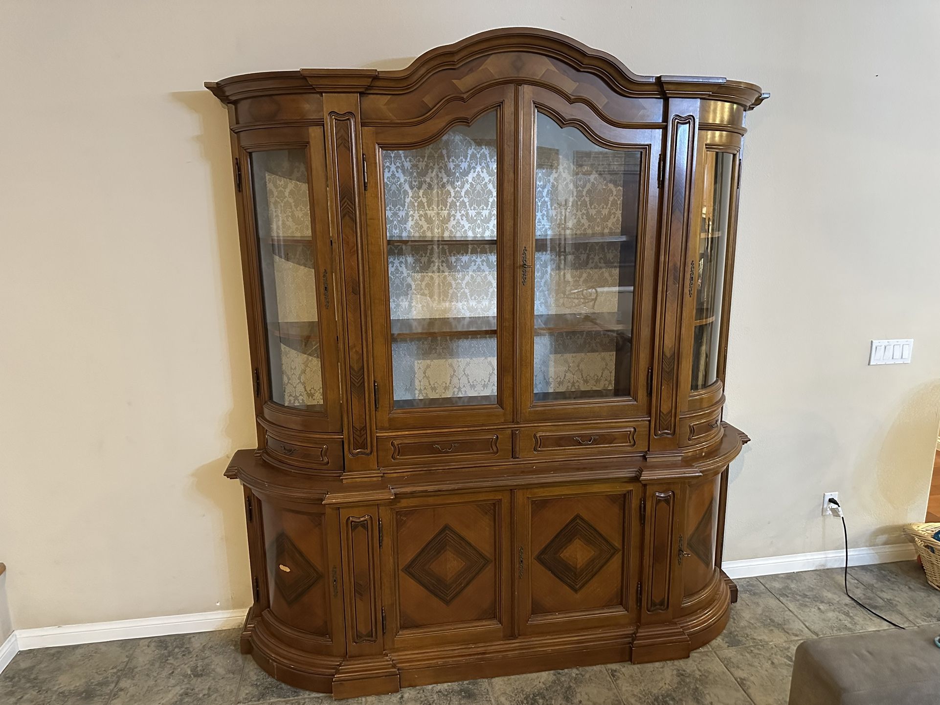 Antique Italian China hutch and Buffet. Mild damage to wood inlay on one door. Set brought to US following military tour in Italy.