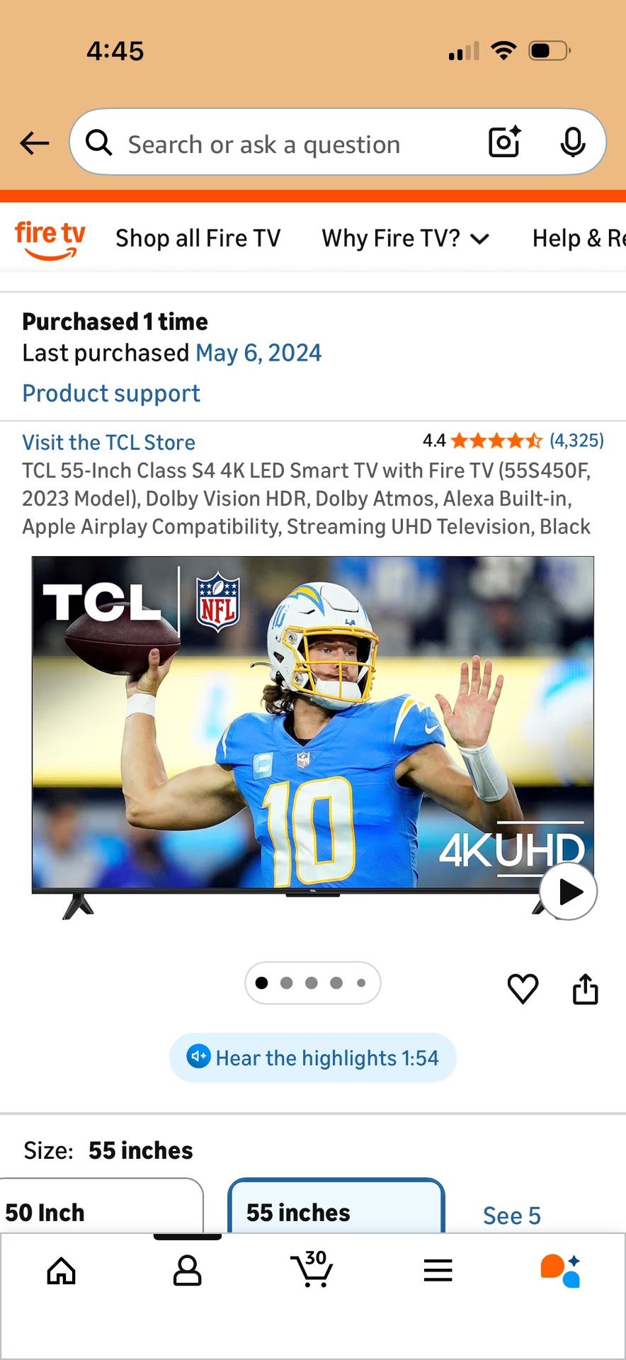 I bought this tv in may 2024. It has been barely used since I wasn’t ever home. I have the wall mount attached and I have the original stands that make it self stand with being mounted. I have since moved in with my guy and we don’t have space for it.