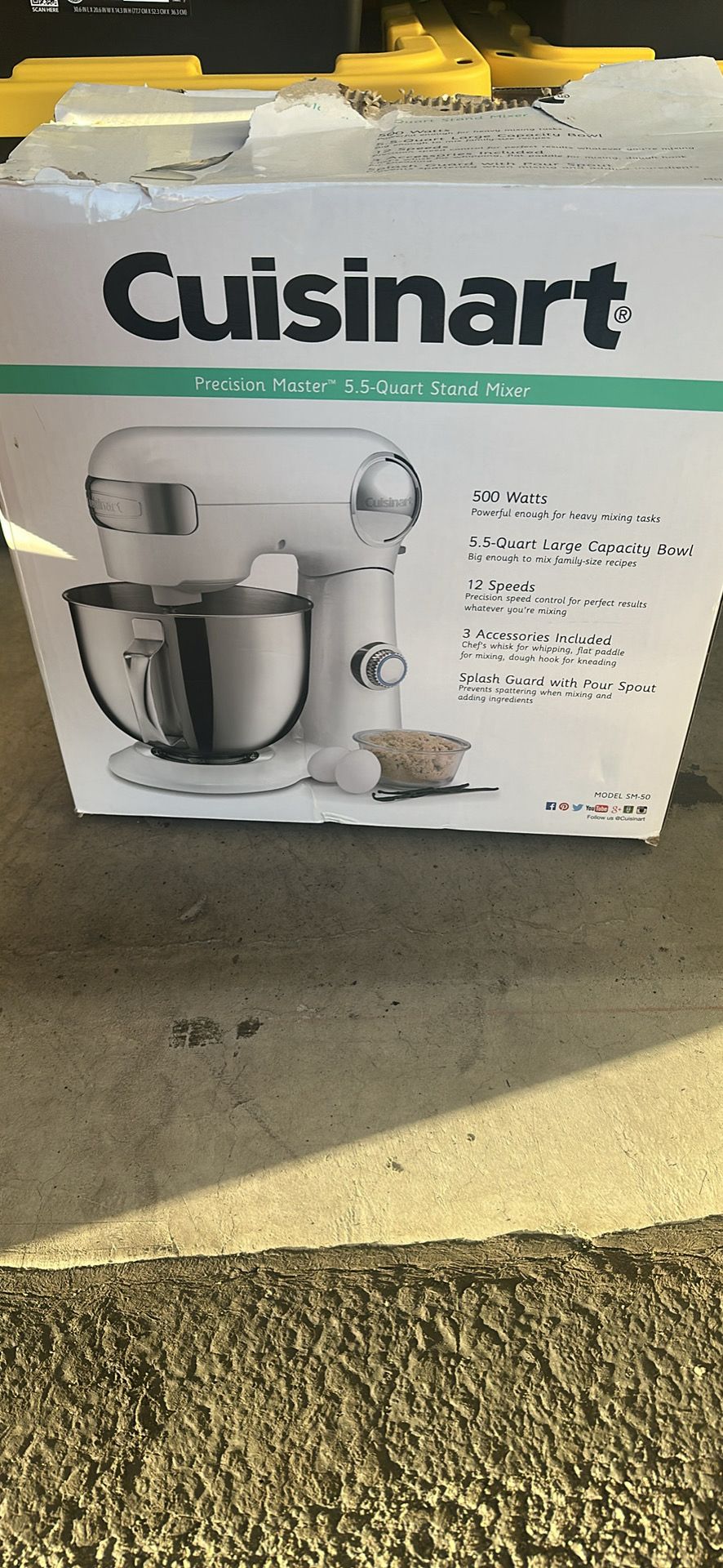 One KitchenAid stand mixer white  one Cuisinart stand mixer white Both new never been used Kitchen Aid still in the box unopened, Cuisinart never used but box is a damaged. Will sell Kitchen Aid for 220.00 Will sell Cuisinart for 150.00 350.00 for both Willing to negotiate.