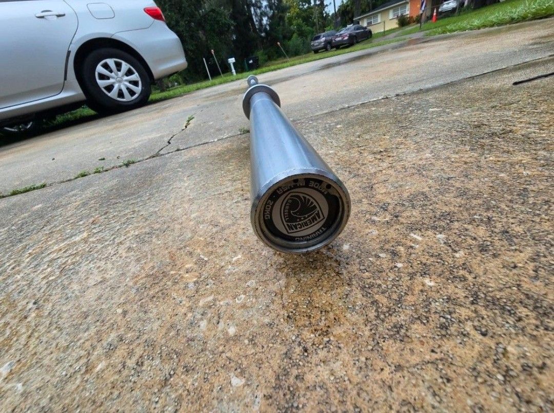 American barbell Training bar Available Sizes:/20KG Diameter: 28MM Length: 2200MM Center knurl: No Knurl Marks: Olympic System: Bushing Shaft: Precision Ground Alloy Steel w/Hard Chrome Coating Sleeve Finish: Hard chrome Application: Weightlifting, Olympic Weightlifting Loadable Sleeve Length: 12.598”/16.338” Tensile Strength: 190K Manufactured: Made in USA