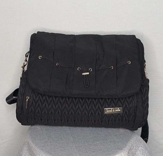 Has many compartments to put baby items. Has long strap to carry or use as a backpack. Very well cared for. No rips or stains. Comes from non smoking home.