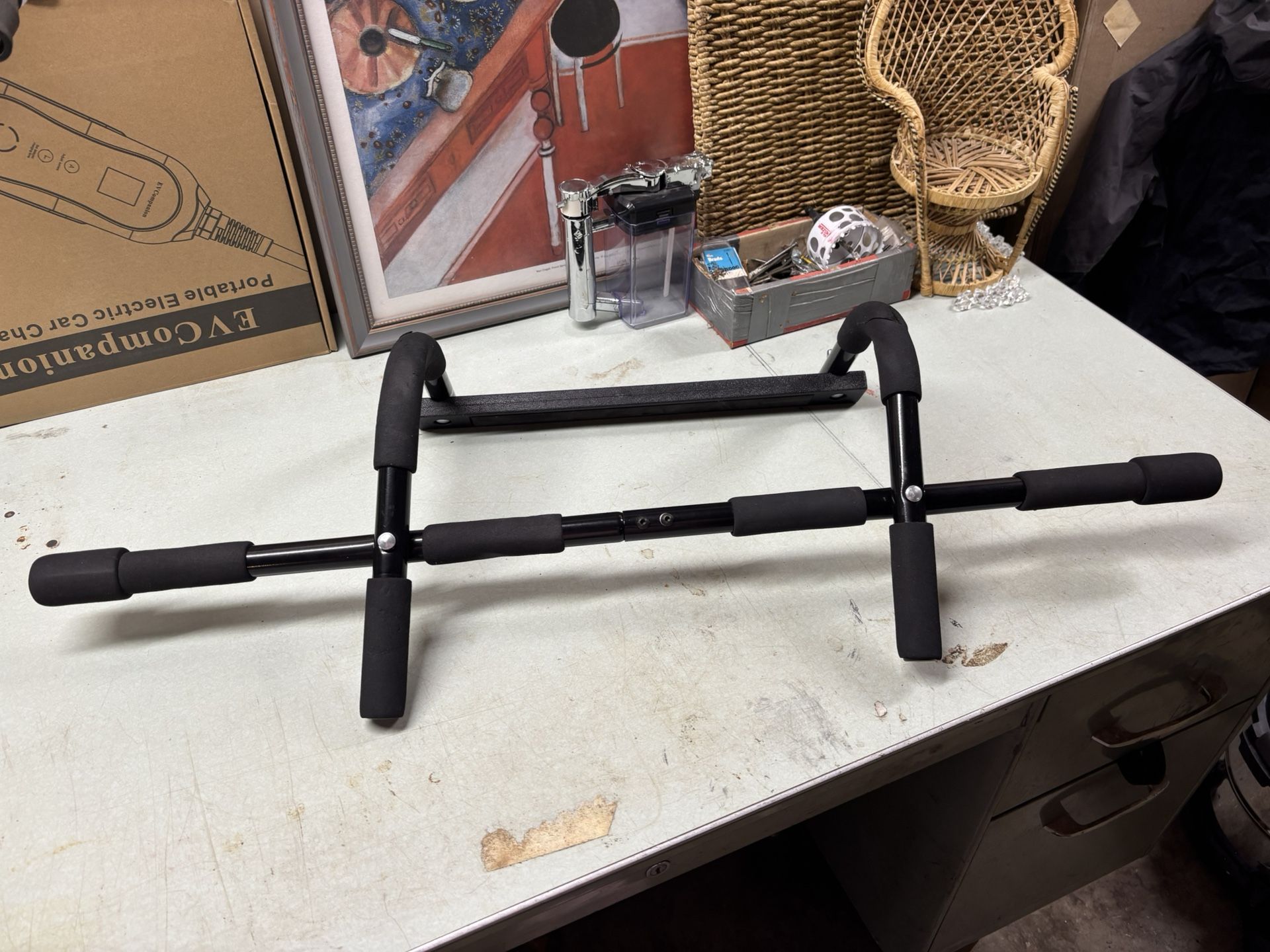 LOW PRICE MOVINGa $89 + Tax Retail Exercise Pull Up Bar Used 2 weeks great condition functions perfectly No screws renter friendly goes over the door frame Asking $20 First come first serve Moving