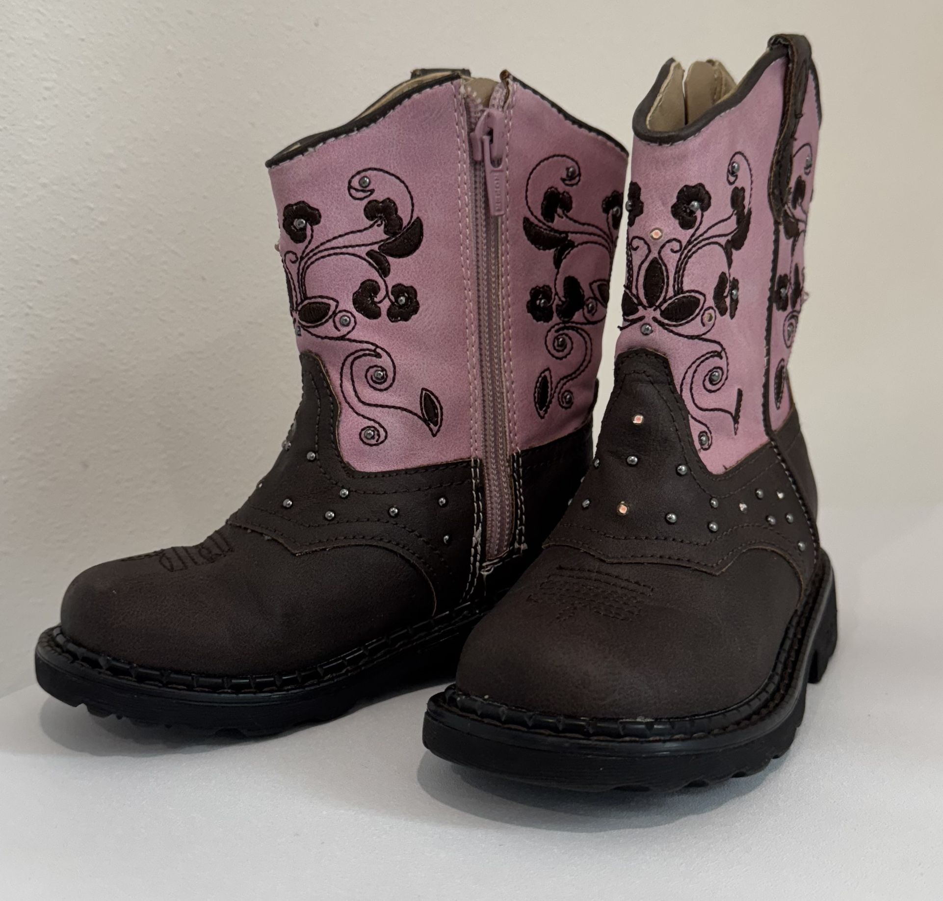 Roper Kids Cowboy Boots Pink Brown Size 7