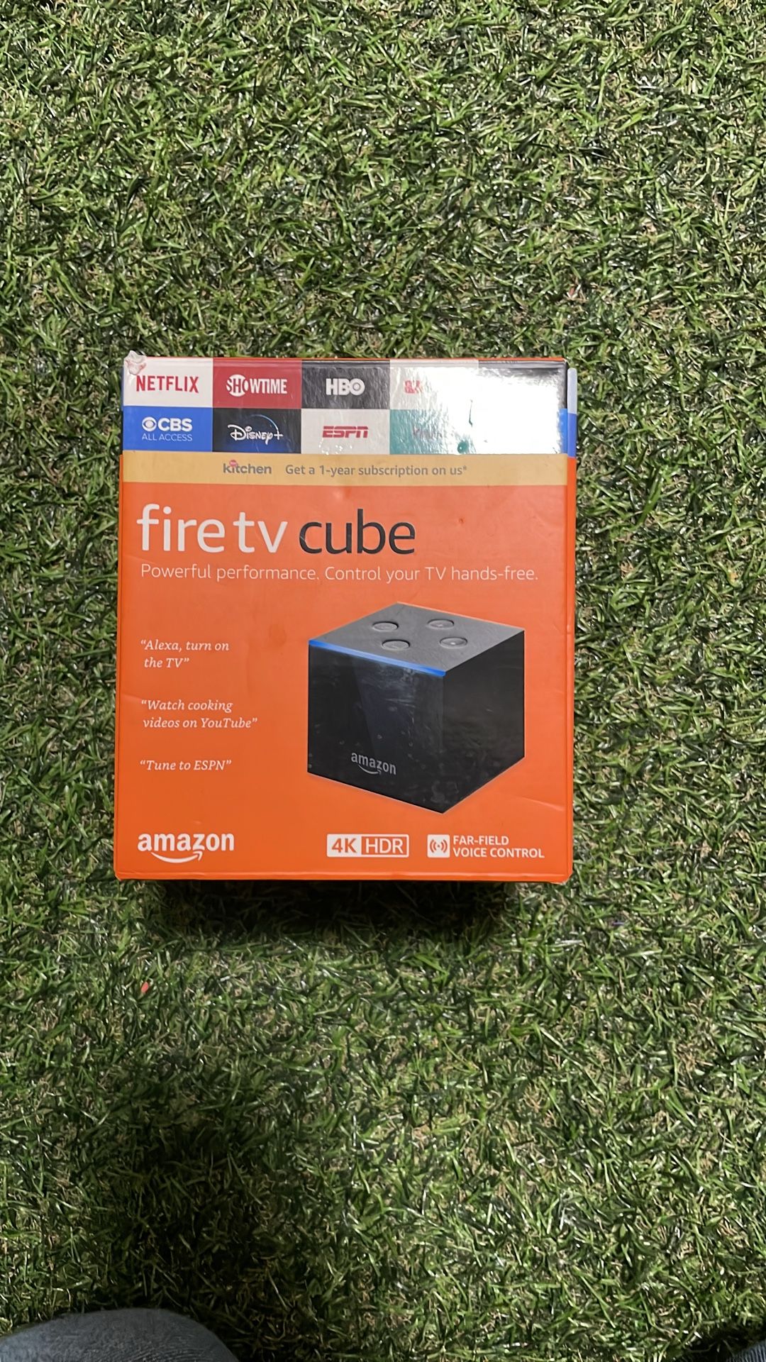 Fire TV cube 4K with remote with IR extender cable, the cord and the remote