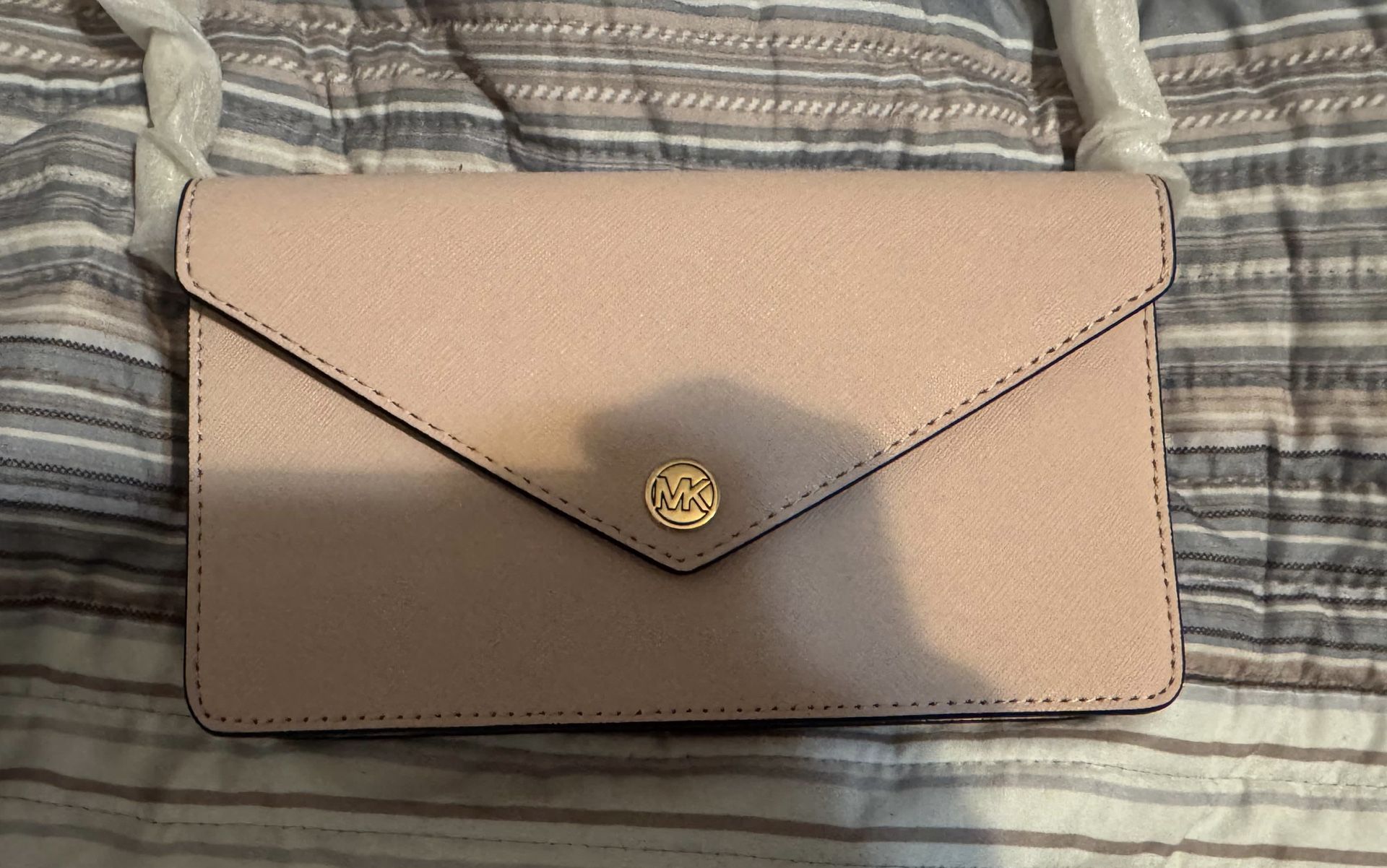 Michael Kors small saffiano leather envelope crossbody bag in powder blush