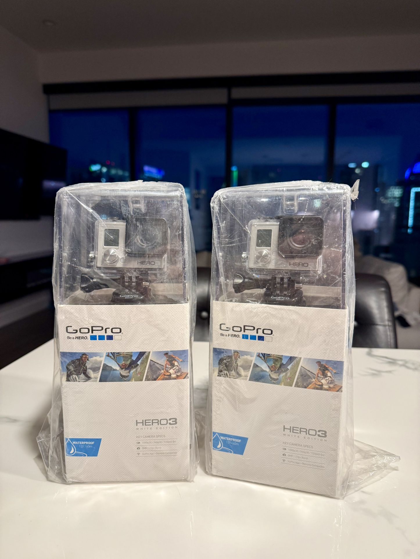 2 devices available at $40 each GoPro HERO3 White Edition in good working condition. Perfect for beginners, travel, action shots, or as a backup camera. Shoots HD video and photos with classic GoPro durability. Included: • GoPro HERO3 White camera • Protective housing • Battery • Charging cable