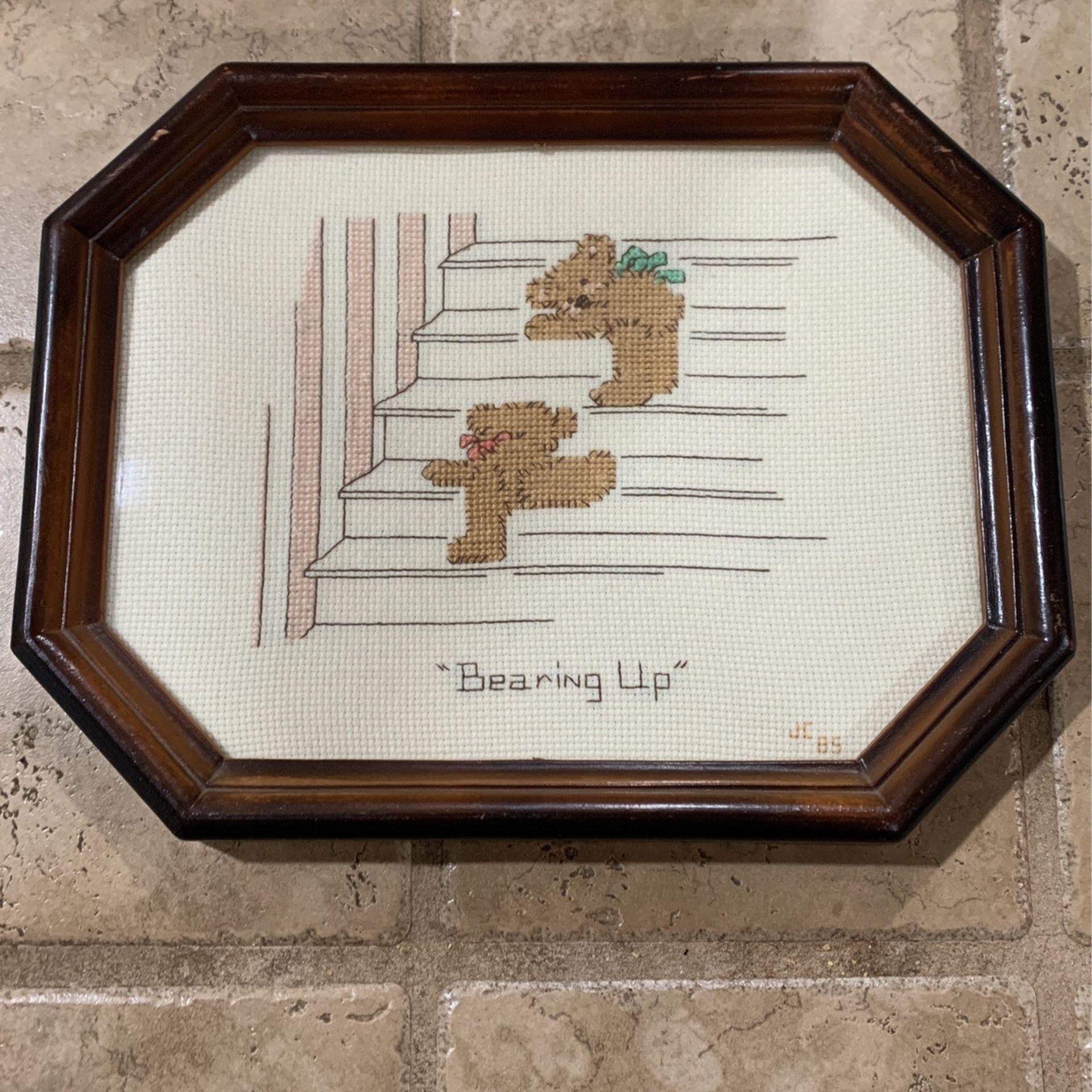 Vintage Teddy Bear Cross Stitch “Bearing Up”