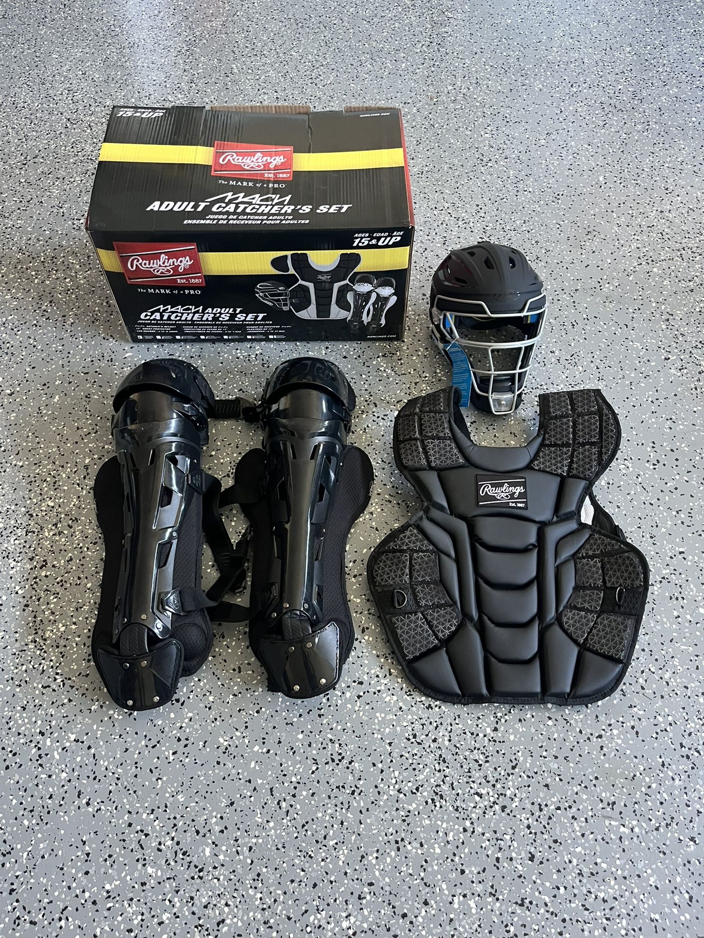 Brand new with box and bags Almost $600 on rawlings website Shinguards worn once to check if they fit so there are a few scratches on the knees barely noticeable (shown in last pic) MLB quality catchers gear $350 OBO
