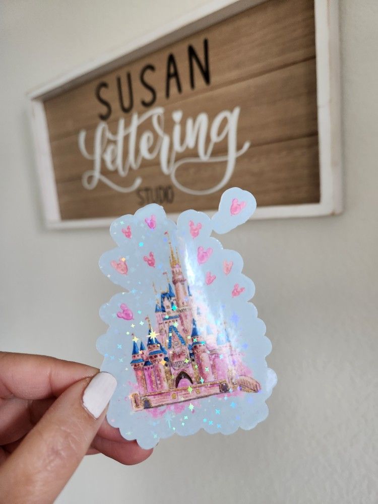 Mickey Balloons Disneyworld Castle Aurora Holographic Castle Sticker