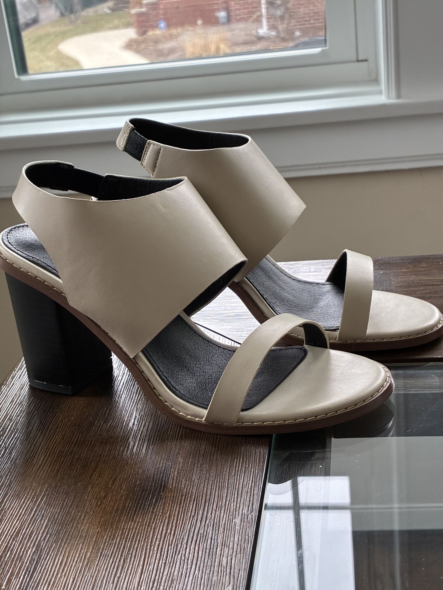 French Connection Beige Leather Sandals with a block heel-Size 7.5