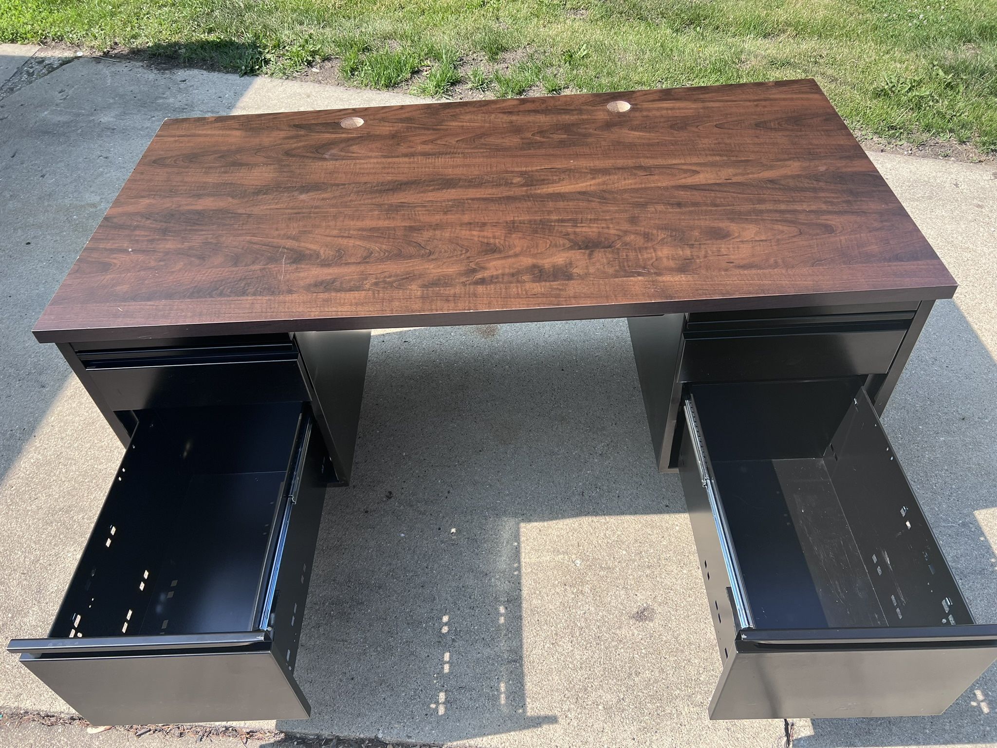 Double Pedestal Steel Desk - 60 × 30", Walnut Top, Black Base
