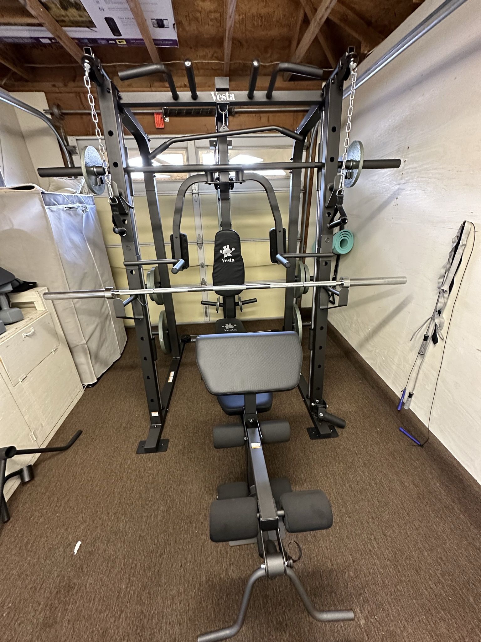 Vesta Fitness Smith Machine 1001 w/Bench Attachment | 230lb Bumpers Olympic Weights | 7ft Olympic Bar | Gym Equipment | FREE DELIVERY/INSTALLđźšš