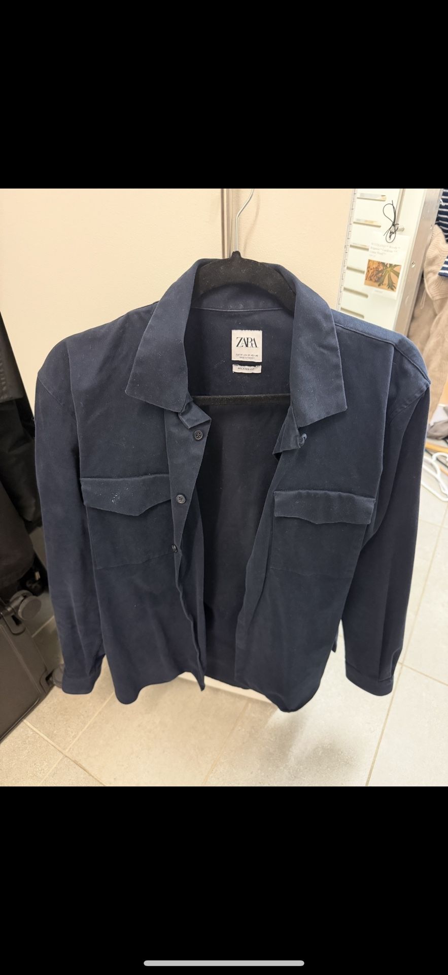 Selling a Zara navy blue shirt jacket in size M. It is in great condition and perfect for layering!