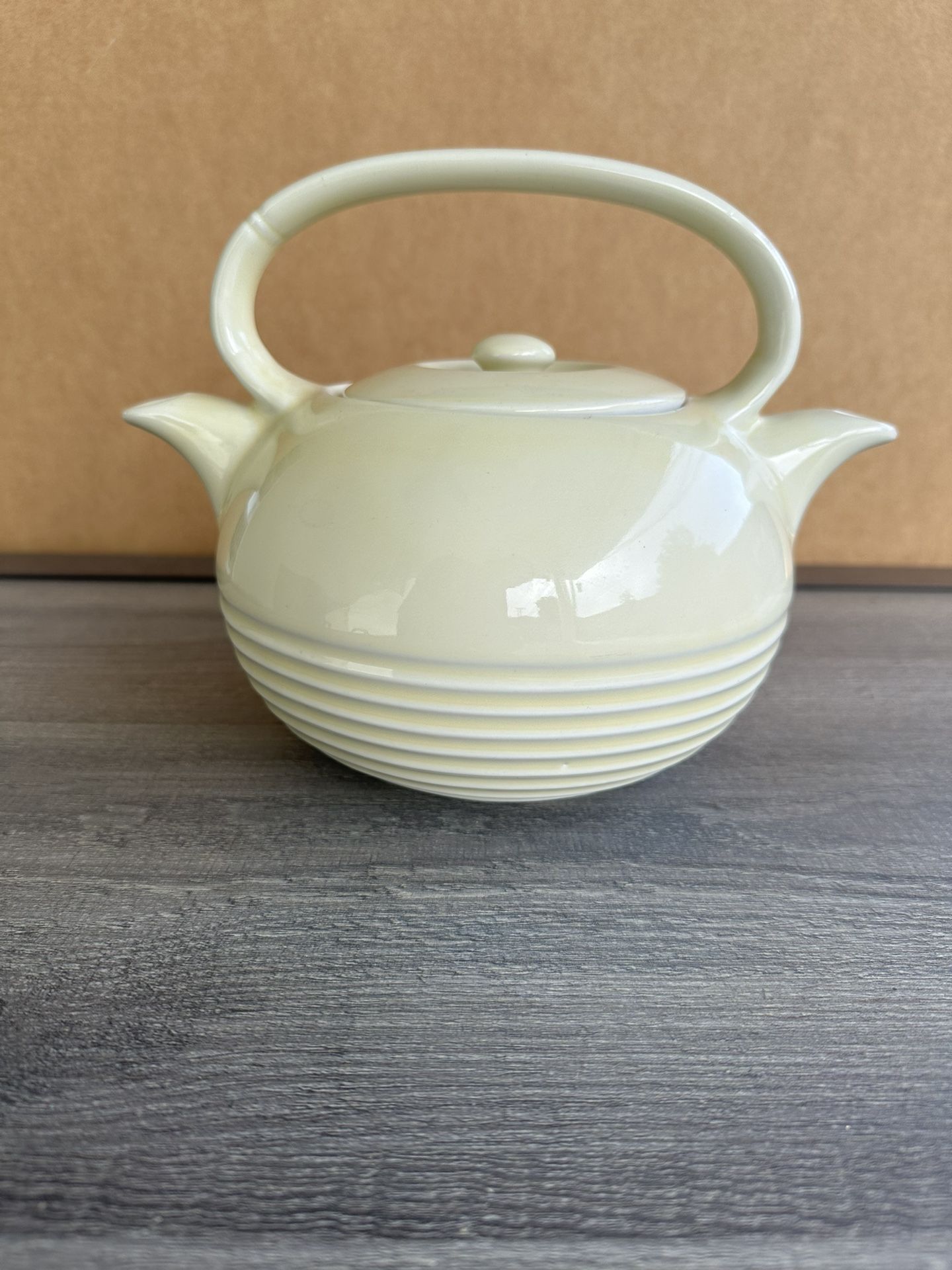 Twinspout Tea Master tea pot that has two liquid chambers. Tea chamber identified by arrow as seen in photo. Approximately 9 inches from spout to spout and about 7 inches in height. No chips or wear makes and great condition. $25.00 or make me an offer. I have another Aladdin style tea pot on offer up. We can bundle them together to you a great deal.
