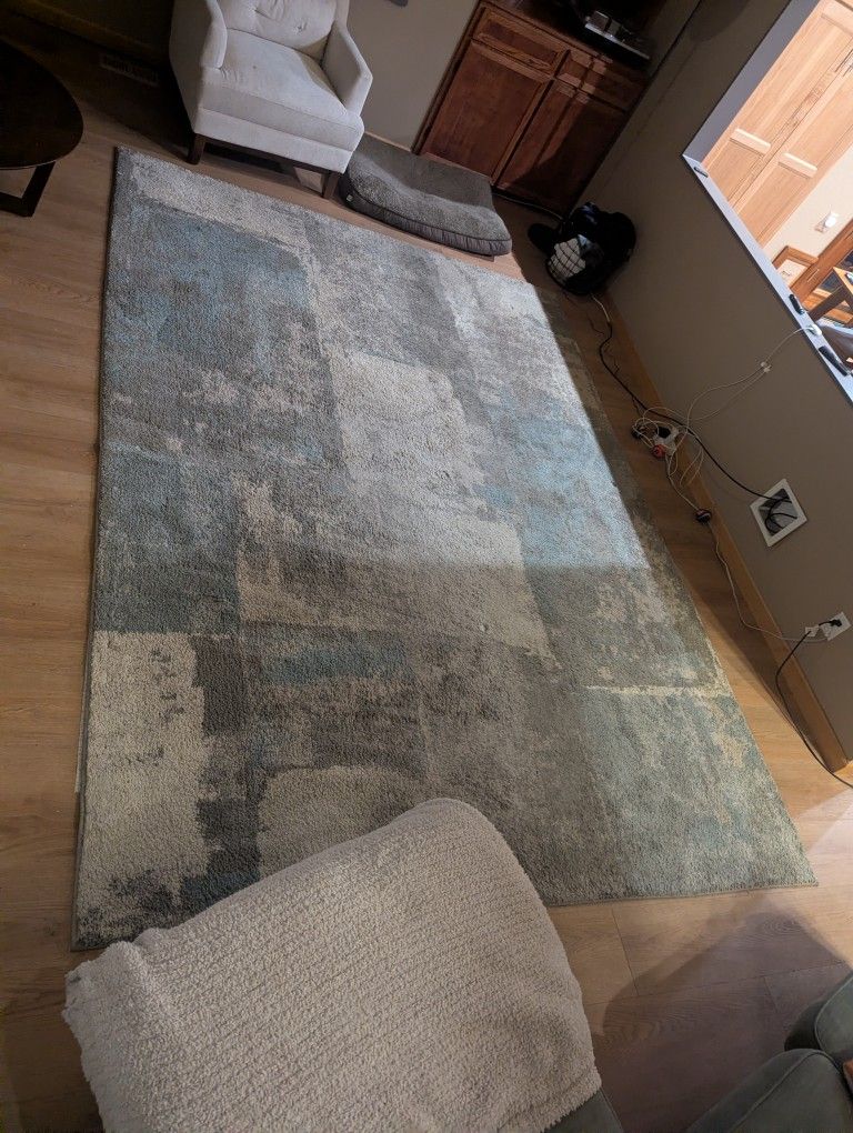 Large rug 8x11 - have two dogs but there have never been any accidents on the rug Could use a deep cleaning but generally a lot of life left.