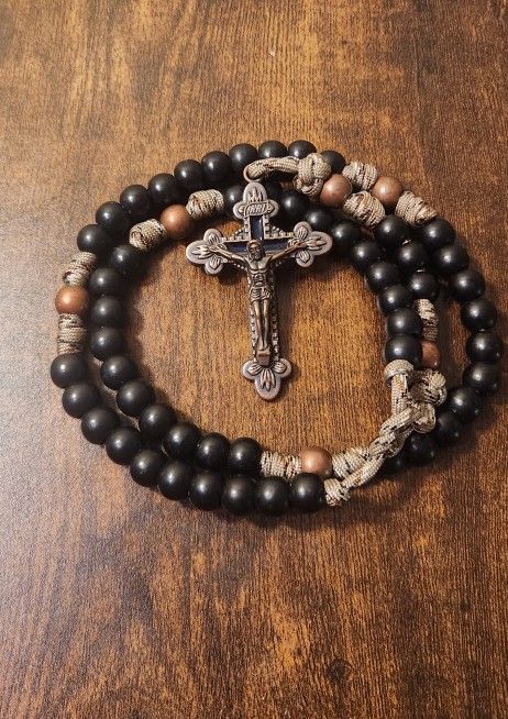 Selling a genuine Rugged Rosaries paracord rosary — extremely durable and built for daily prayer, travel, or field use. This is their military-grade style, made with strong paracord + matte black beads + bronze accent beads + metal crucifix. Excellent used condition, no fraying or damage. Ready to use or gift. ✅ Hand-knotted paracord construction ✅ Nearly unbreakable — made for military, outdoors, or rough environments ✅ Full–size / wearable around the neck ✅ Bronze St. Benedict–style crucifix ✅ High quality Catholic devotional — perfect for men, EDC carry, or retreat prep Price: $40 Pickup in locally or can ship Message me if interested.