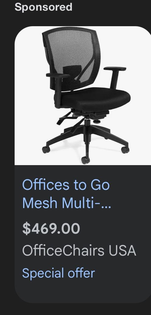 Pneumatic seat height adjustment Height adjustable arms Adjustable lumbar support Infinite seat lock with tilt tension adjustment Back angle adjustment Forward tilt control Twin wheel carpet casters Soft casters (OTG10701) are available Seat Height 17.5” - 22.5” Seat Depth 18.5” Back Height 19.5” Arm Height 8” - 11.5”