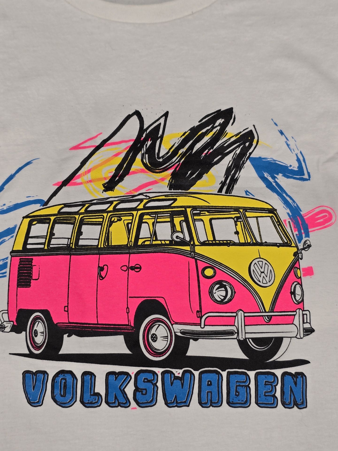 Volkswagen Microbus T-Shirt Large White Neon VW Bus Size Large White Great Colorful Neon Graphic on front. Pre-worn in very good condition. Tons of life left. No rips, tears or stains. Please see pictures for details. If you have any questions PLEASE ASK. I ship out fast. Sku-528031c4