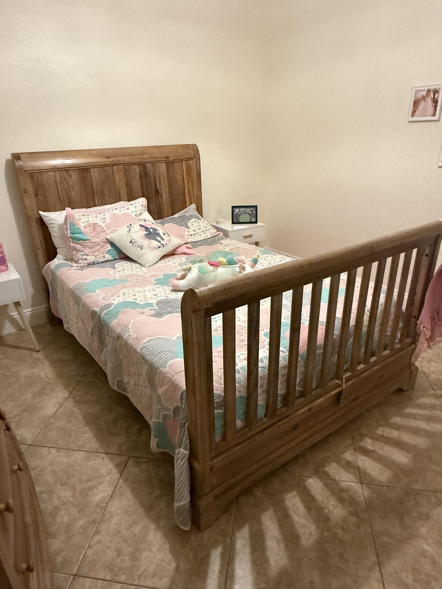 Excellent condition child bedroom set. Full bed (mattress not included) Large dresser Chest with book shelves