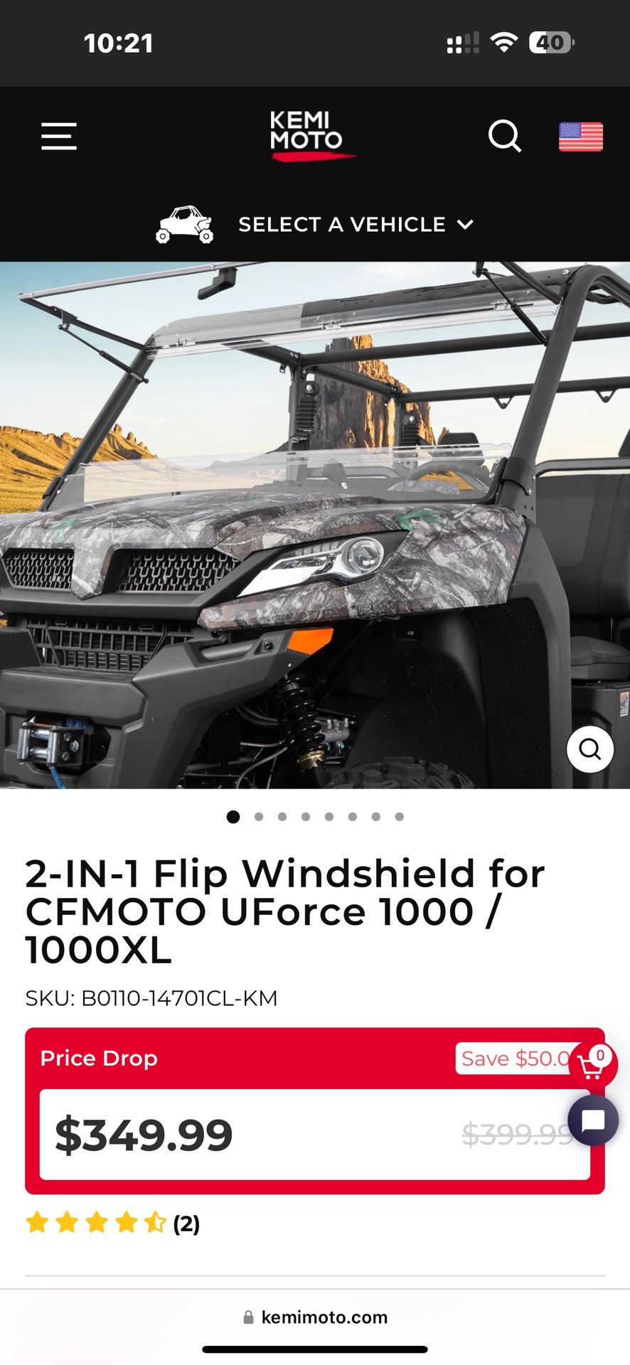 2 in 1 Flip Windshield Cfmoto Force 1000/1000xl