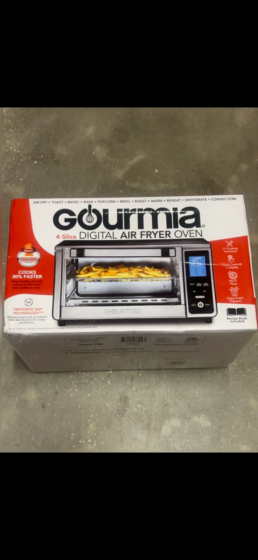 Gourmia Digital 4-Slice Toaster Oven Air Fryer with 11 Cooking Functions Stainless Steel Gray: 1000W,