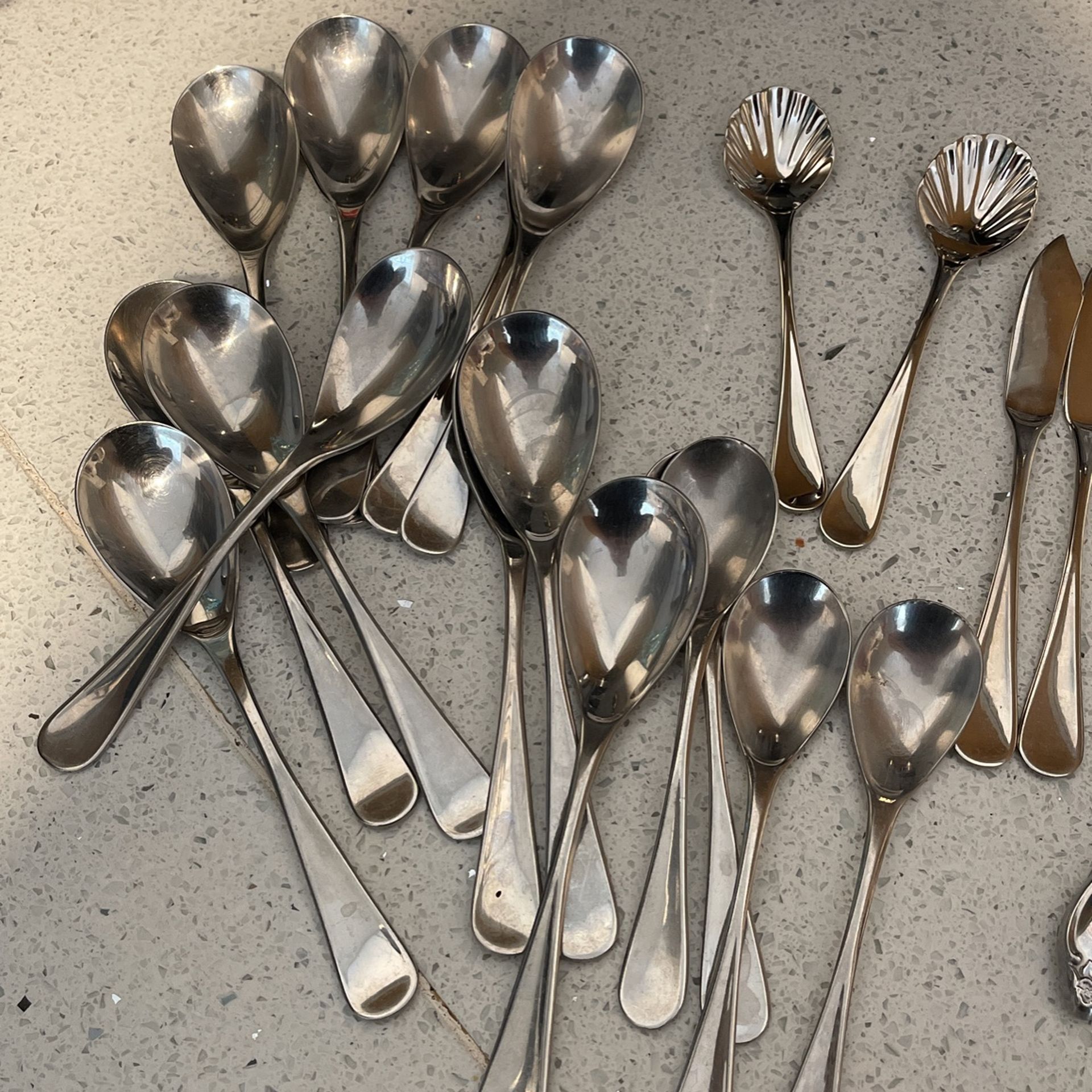 JA henckels international 18/10 flatware Stainless steal 17 spoons 15 knifes 2 butter spreading knifes