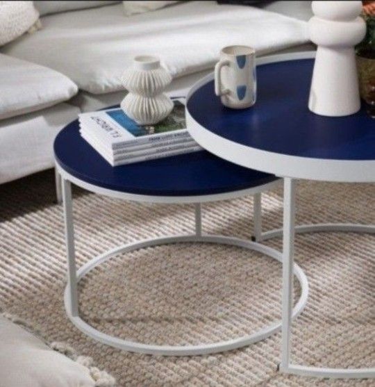 Contemporary Blue Round Nesting Coffee Table Set - 2(New In A Box)