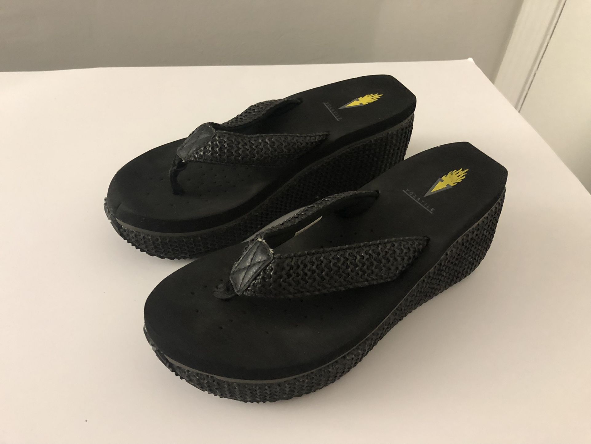 Thong platform wedge sandal- braided fabric upper and midsole. Comfortable and stylish